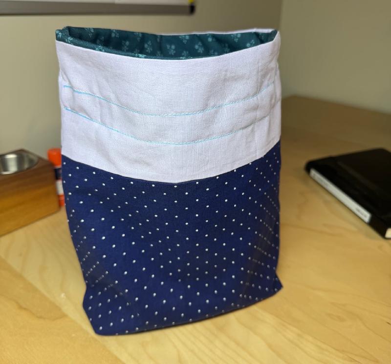 Had second sewing class yesterday. We made drawstring bags. Well, tried to. I struggled with the sewing machine for half the class. It kept jamming. And when it wasn’t jamming, I was mis-threading it. We cut several pieces of fabric for the first time. That was harder than I expected. Like my dad often said while building something, “I cut it twice and it’s still too short.” I didn’t finish. I still need to make and thread the drawstring.