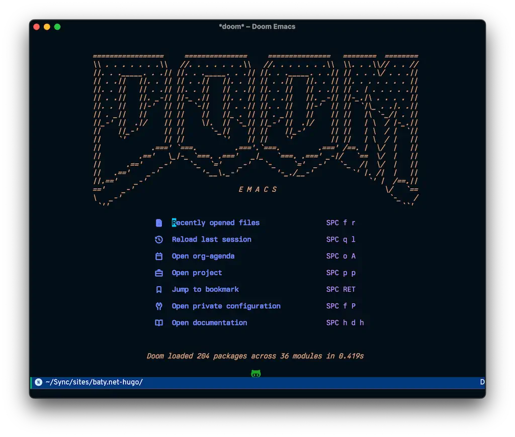 And oh, the key bindings! Around six months ago, I moved back to my vanilla config and decided to stop using Evil mode. It was a painful transition, but I got used to it and now the stock key bindings feel normal. The problem was that I also use several tools that only offer Vim bindings. Switching between Emacs and Vim bindings has been chaotic, to say the least. I keep tripping over myself and there's been a lot of swearing. Going back to Doom and Evil mode has been tricky, but the muscle memory is returning, and I like the consistency in the apps I use most.