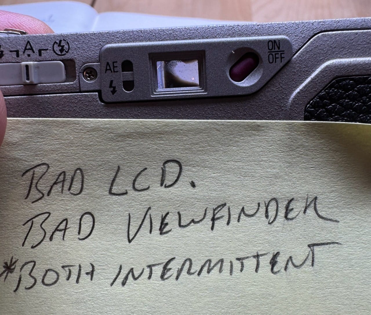 I have been thrilled to be able to use my little GR1 again, after pulling it off the shelf and finding that it does actually work. Except this morning I was reminded why I'd retired it before. The viewfinder becomes blocked by something loose in there or perhaps some sort of separation. Either way, it's not usable when this happens, so I may have to document the issue and re-retire the camera.