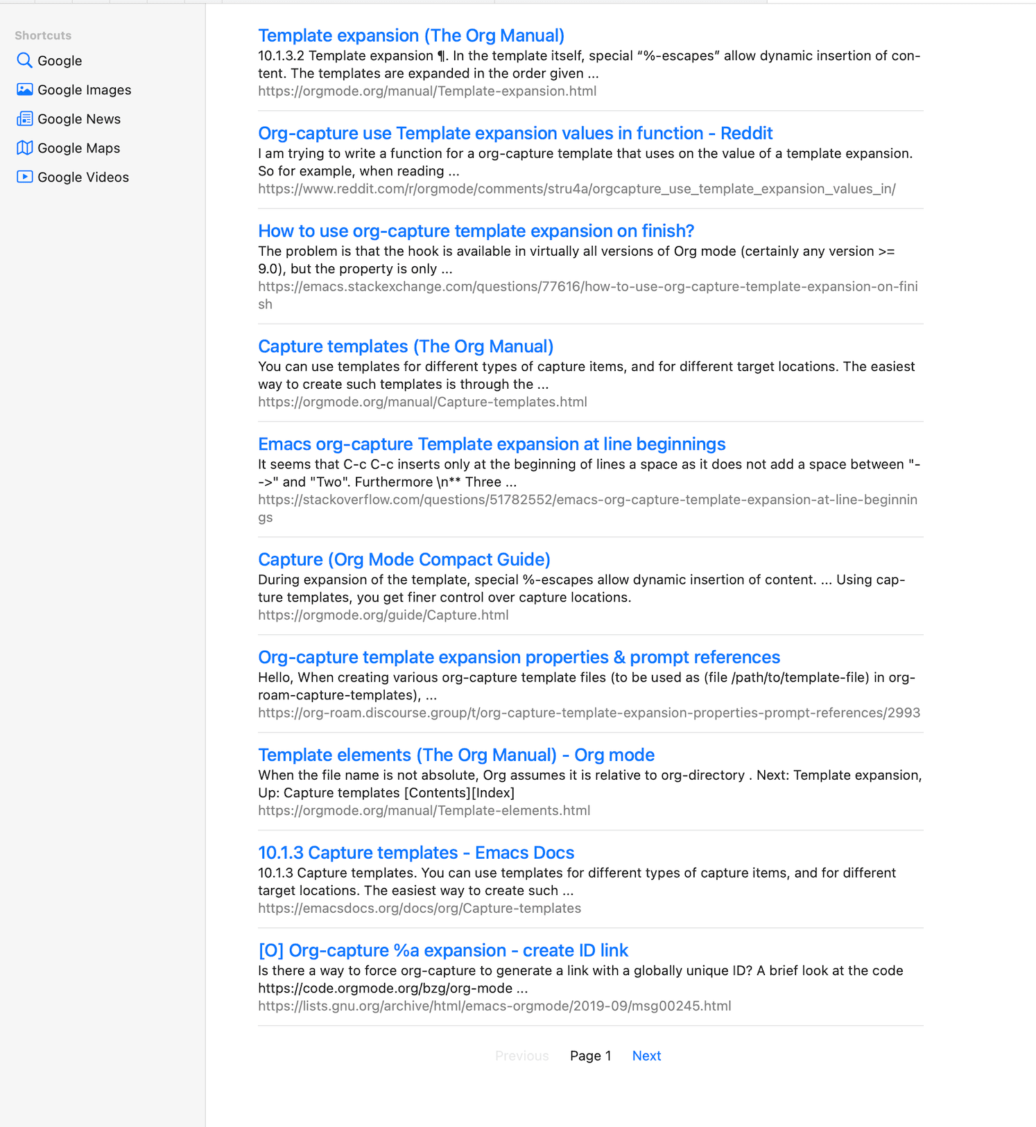 I've been trying to hang on to using DuckDuckGo as my default search engine, but the DDG results have become less and less useful for some reason, so I frequently head over to use Google search. Which, blech.