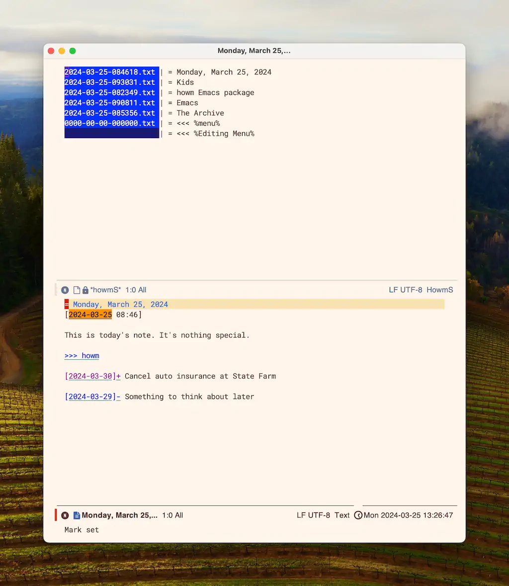 To add a note in any of the above apps, I just type the note. Tagging and linking are available, but optional. Bear and TiddlyWiki don't create a new file at all. Howm creates one but I don't have to care where it is or what it's called. I've grown to like this way of working. Bear has taught me to that using tags might be good enough.