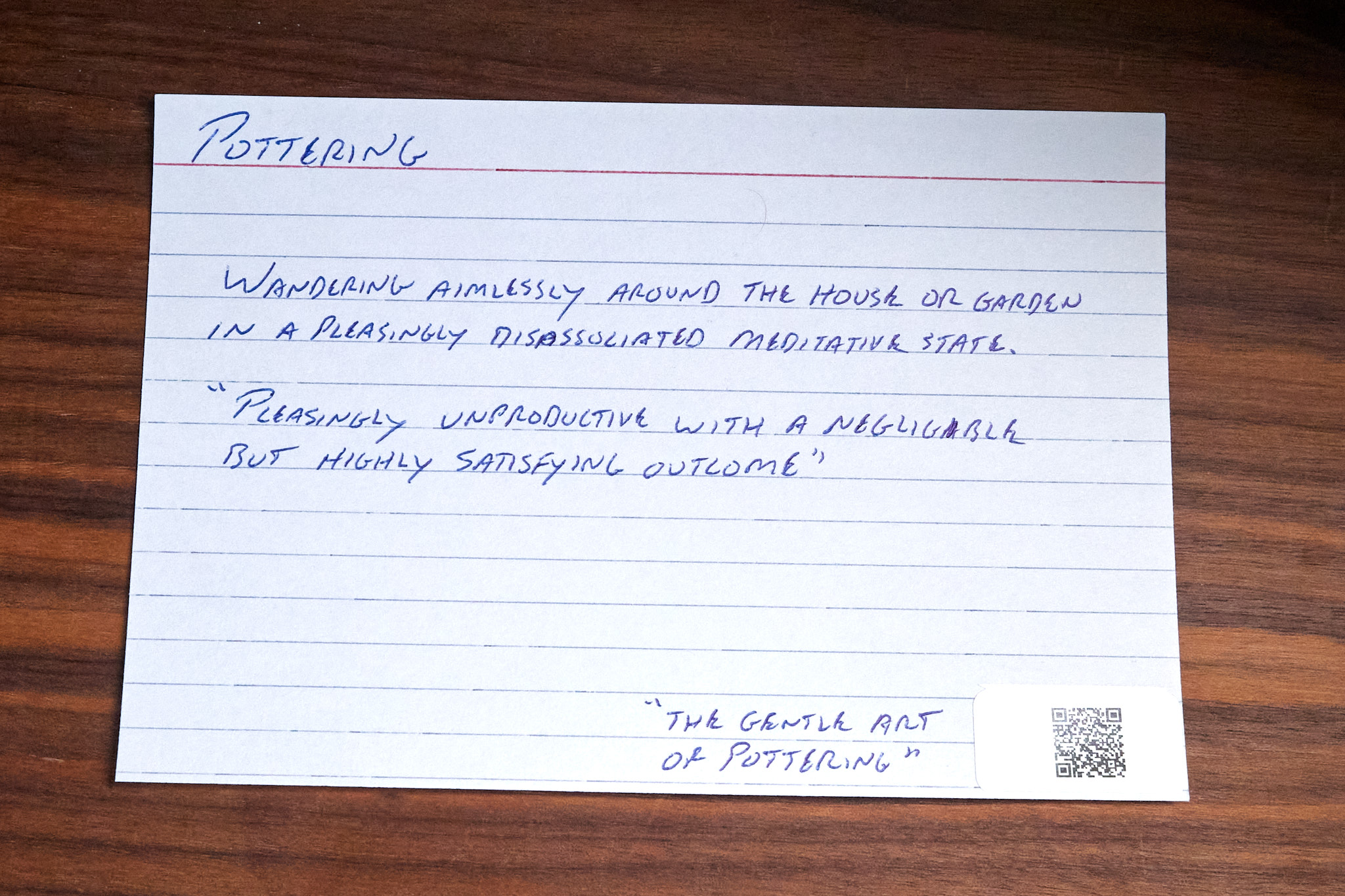 Putting everything where it belongs has always been a pleasure for me. "Mise en place" and all that. I find comfort in knowing that a thing is where it should be and that I know where that is.