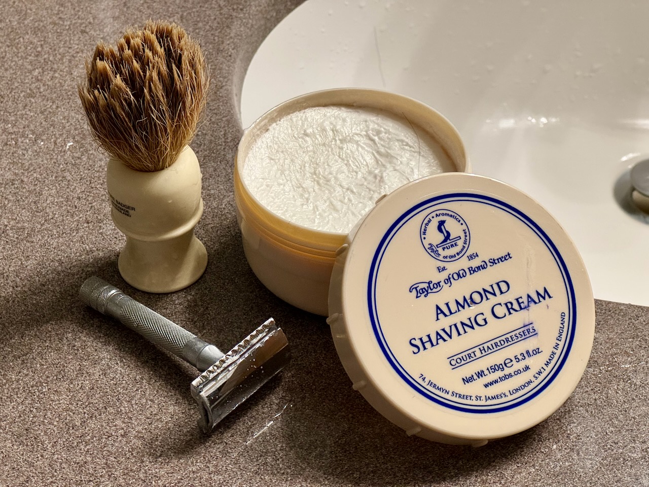 Note that brushes using badger fur are made from, well, real badgers. Those badgers are sometimes badly mistreated. I didn't know that at the time I bought mine. Today, I would recommend a synthetic brush instead. ↩︎
