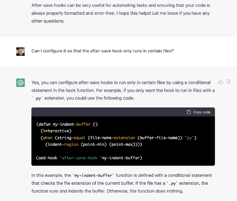 I’m a latecomer to AI, but I just had my first real AI revelation moment while using OpenAI’s ChatGPT. I asked it an honest question that I had and got a complete, sensible, and correct answer. It’s like if Google had a brain, or if I asked an assistant to look something up for me and report back. Here’s part of the thread: