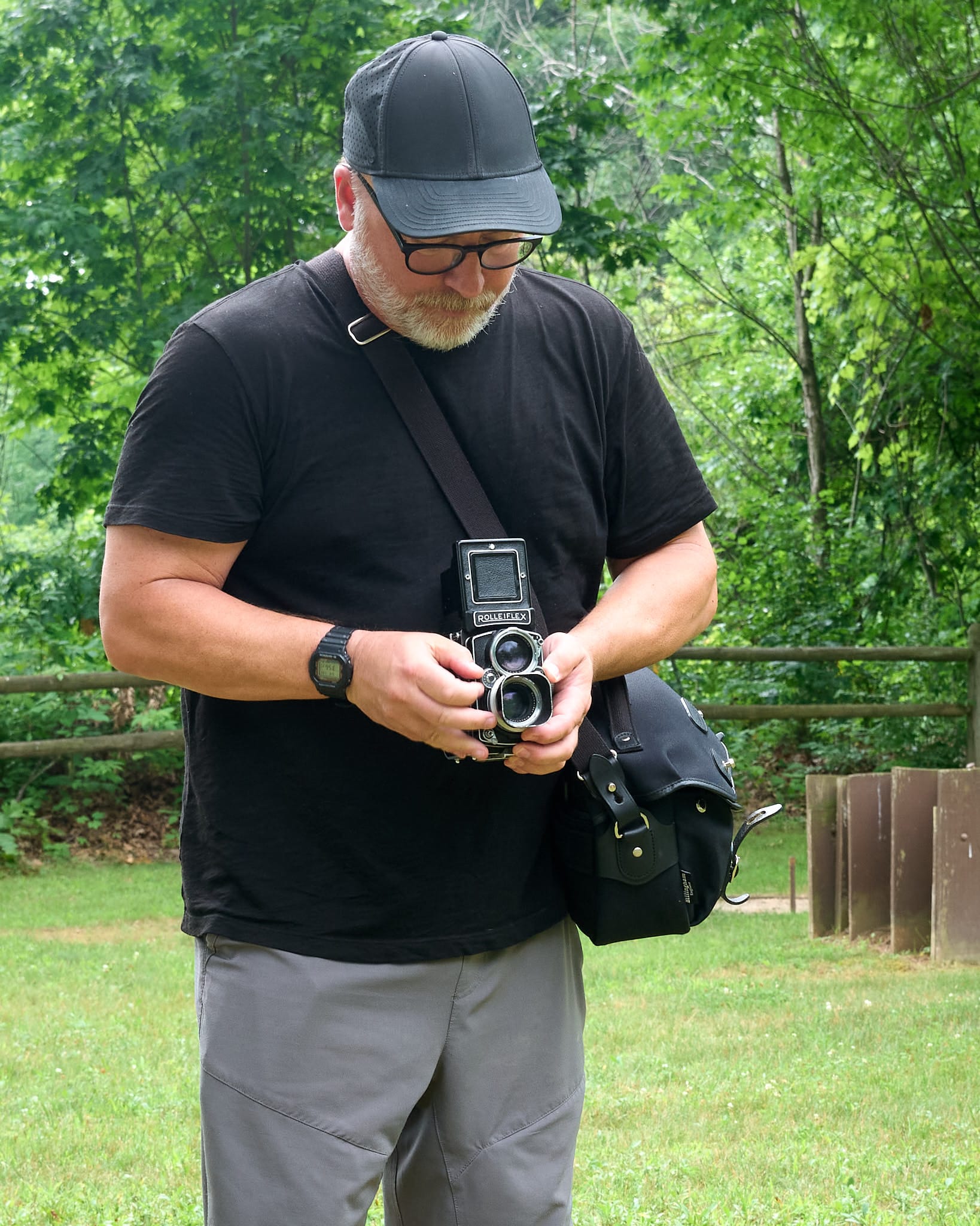 Our annual family reunion was held this weekend. I brought the SL2 and the Rolleiflex. My wife snapped this photo with the SL2 of me shooting the Rolleiflex. I guess this is what I look like ¯_(ツ)_/¯.
